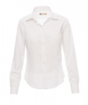 Women’s fine weave combed cotton fitted shirt, pleats at the front and back, Italian-style collar, tailored cuff with 2 buttons and button hole, stitched placket with matching buttons. With yoke. Easy-care fabric.